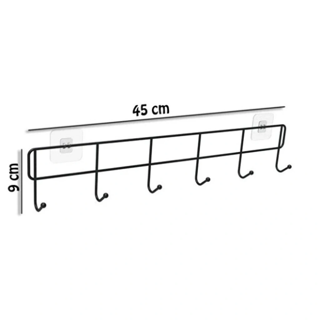 6'LI YAPIŞKANLI KAPI ARKASI ASKIÜrün Özellikleri6'lı yapışkanlı kapı arkası askı, ev ve ofis düzenini pratik şekilde sağlamak isteyenler için tasarlanmış fonksiyonel bir depolama çözümüdür. Delme veya vidalama gerektirmeyen yapışkanlı kapı arkası askı tasarımı sayesinde kapı, dolap kapağı veya düz yüzeylere kolayca uygulanabilir. Toplam altı askı bölümüne sahip olan ürün; mont, ceket, çanta, havlu, bornoz ve aksesuar gibi eşyaların düzenli şekilde asılmasına imkân tanır. Dayanıklı metal gövdesi sayesinde günlük kullanımda sağlam duruş sergilerken, siyah renkli sade tasarımı ile her ortama uyum sağlar. Yaklaşık 45 cm genişliği sayesinde alanı verimli kullanır ve dar alanlarda bile yüksek depolama avantajı sunar. Ev, banyo, mutfak ve ofis gibi alanlarda tercih edilen çok amaçlı duvar askısı, düzenli ve toplu bir görünüm elde etmeye yardımcı olur.Ürün Teknik Özellikleri Özellik Açıklama Ürün Adı 6'lı Yapışkanlı Kapı Arkası Askı Askı Sayısı 6 adet Genişlik 45 cm Yükseklik 9 cm Malzeme Dayanıklı metal Montaj Yapışkanlı, delmesiz kullanım Kullanım Alanı Kapı arkası, dolap, duvar Kullanım Amacı Düzenleme ve asma çözümü Paket İçeriği1 adet 6'lı yapışkanlı kapı arkası askı