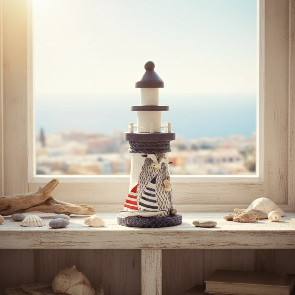 AHŞAP MARİN DENİZ FENERİ MODEL 5Ürün ÖzellikleriAhşap Marin Deniz Feneri Model 5, deniz temalı dekorasyon sevenler için özel olarak tasarlanmış estetik ve şık bir dekoratif üründür. Zarif tasarımıyla her ortamda göz alıcı bir görüntü oluşturur. Ahşap malzemeden üretilmiş olup, dayanıklı yapısı sayesinde uzun ömürlü kullanım sunar. Mavi ve beyaz tonlarıyla marin temalı mekanlara mükemmel uyum sağlar. El işçiliği ile detaylandırılmış olup, raf, masa veya vitrin gibi alanlarda rahatlıkla sergilenebilir.Paket İçeriği1 adet Ahşap Marin Deniz Feneri Model 5