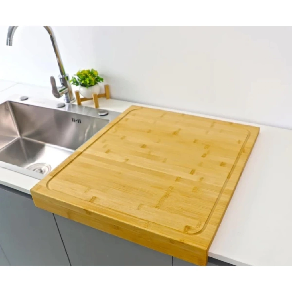 AHŞAP TEZGAH ÜSTÜ KESME TAHTASI KÜÇÜK BOYÜrün ÖzellikleriAhşap tezgah üstü kesme tahtası, doğal ahşap malzemeden üretilmiş olup mutfağınızda hem şıklık hem de kullanım kolaylığı sağlar. 38x45 cm ölçülerindeki küçük boy tasarımı ile tezgah üstünde rahatlıkla kullanılabilir. Sağlam ve dayanıklı yapısı sayesinde uzun ömürlüdür. Yüzeyinde bulunan oluk sistemi, doğrama sırasında su ve meyve-sebze sularının dışarı taşmasını önleyerek hijyenik kullanım sunar. Et, sebze, meyve ve ekmek doğrama için idealdir. Kaymaz yapısı ile güvenli kullanım sağlar.Paket İçeriği1 adet Ahşap Tezgah Üstü Kesme Tahtası Küçük Boy