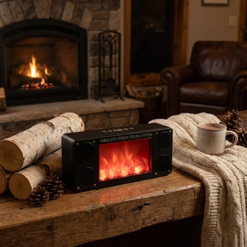 ALEV ŞÖMİNE EFEKTLİ BLUETOOTH HOPARLÖR SİYAHÜrün ÖzellikleriAlev Şömine Efektli Bluetooth Hoparlör, bulunduğu ortama hem sıcak hem de modern bir atmosfer katmak isteyenler için tasarlanmış etkileyici bir ses sistemi sunar. Gerçek şömine alevini andıran LED efektleri, ortama romantik ve huzur verici bir ambiyans kazandırırken; güçlü stereo ses yapısı ile müzik deneyimini üst seviyeye taşır. Siyah gövdesi, şık tasarımı ve yüksek kaliteli malzemesi ile hem ev hem ofis kullanımında dekoratif bir obje olarak da öne çıkar.Bluetooth özelliği sayesinde telefon, tablet ve bilgisayarlar ile hızlı ve sorunsuz eşleşme sağlar. USB, TF kart ve AUX girişleri sayesinde geniş bir kullanım alanı sunar; dilediğiniz müziği farklı kaynaklardan kolayca çalabilirsiniz. Dahili FM radyo (High Signal) özelliği ile sevdiğiniz radyo istasyonlarını yüksek sinyal kalitesiyle dinleyebilirsiniz. 1200 mAh batarya kapasitesi, uzun süre kesintisiz kullanım imkânı sunarken Type-C şarj girişi sayesinde hızlı ve güvenli bir şekilde şarj edilebilir.Bu hoparlör, yalnızca bir ses sistemi değil; aynı zamanda dekoratif bir şömine efekti ile bulunduğu ortamın atmosferini tamamen değiştiren özel bir tasarım ürünüdür. Hem hediye olarak hem de günlük kullanım için mükemmel bir tercihtir.Paket İçeriği1 Adet Alev Şömine Efektli Bluetooth Hoparlör