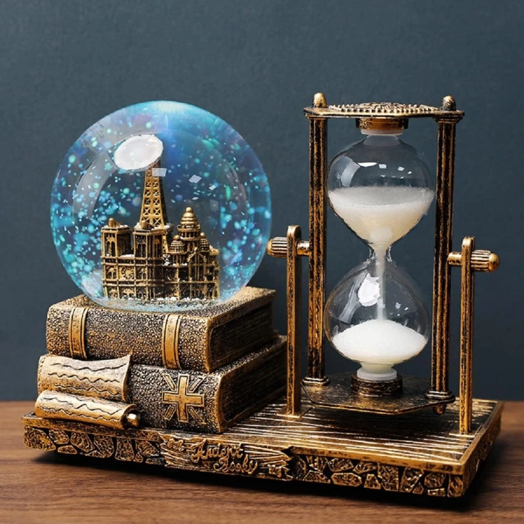 Dekoratif Kar Küresi ve Kum Saati Gold Model