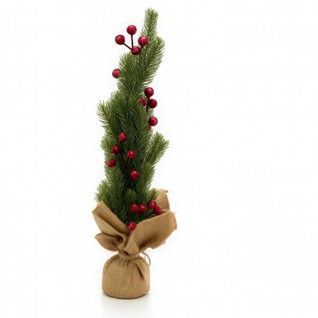 DEKORATİF MİNİ YAPAY KOKİNA SÜSÜrün ÖzellikleriDekoratif mini yapay kokina, 45 cm boyutuyla masa üstü dekorasyonlarda ve küçük alanlarda şık bir yeni yıl atmosferi oluşturmak için ideal bir üründür. Canlı yeşil çam dallarıyla birlikte tasarlanan kırmızı kokina detayları, alt kısmındaki keten kaplı saksı görünümü ise ağaca rustik ve sıcak bir tarz kazandırır. Dayanıklı yapay malzemeden üretildiği için her yıl tekrar kullanılabilir, şeklini uzun süre korur ve dökülme yapmaz. Ev, ofis, vitrin, kafe veya hediye amaçlı kullanımlarda dekoratif bir tamamlayıcı olarak öne çıkar.Paket İçeriği1 Adet Dekoratif Mini Yapay Kokina Süs