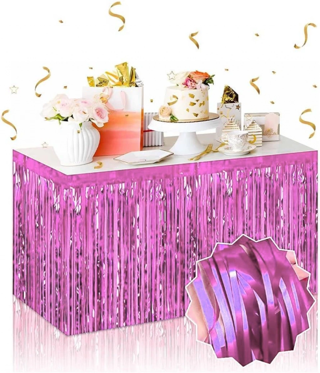Kendinden Yapışkanlı Pembe Metalize Püsküllü Masa Eteği