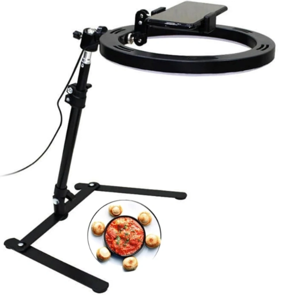 MASAÜSTÜ ÇEKİM IŞIĞIÜrün ÖzellikleriMasaüstü çekim ışığı, içerik üreticileri, online satış yapanlar ve günlük kullanımda net aydınlatma ihtiyacı duyanlar için pratik ve profesyonel bir çözüm sunar. I şeklindeki ayak tasarımı sayesinde masa üzerinde minimum alan kaplar ve dengeli bir kullanım sağlar. Yüksekliği ayarlanabilir yapısı ile 25 ila 45 cm arasında konumlandırılabilir, böylece farklı çekim açılarına ve masa düzenlerine kolayca uyum sağlar.180 derece dönebilen başlığı sayesinde ışık açısı istenilen yönde ayarlanabilir ve homojen bir aydınlatma elde edilir. Ayarlanabilir telefon klipsi, farklı telefon modelleriyle uyumlu olup 180 derece hareket kabiliyeti sunarak video, fotoğraf, canlı yayın ve görüntülü görüşmelerde ideal çekim açısını yakalamanıza yardımcı olur. Masaüstü kullanım için tasarlanan bu çekim ışığı, ürün çekimleri, sosyal medya içerikleri, makyaj videoları ve online toplantılar için net, gölgesiz ve dengeli bir ışık sağlar. Dayanıklı gövdesi ve kolay kurulum özelliği sayesinde hem evde hem ofiste uzun süreli kullanım için uygundur.Paket İçeriği1 adet Masaüstü Çekim Işığı