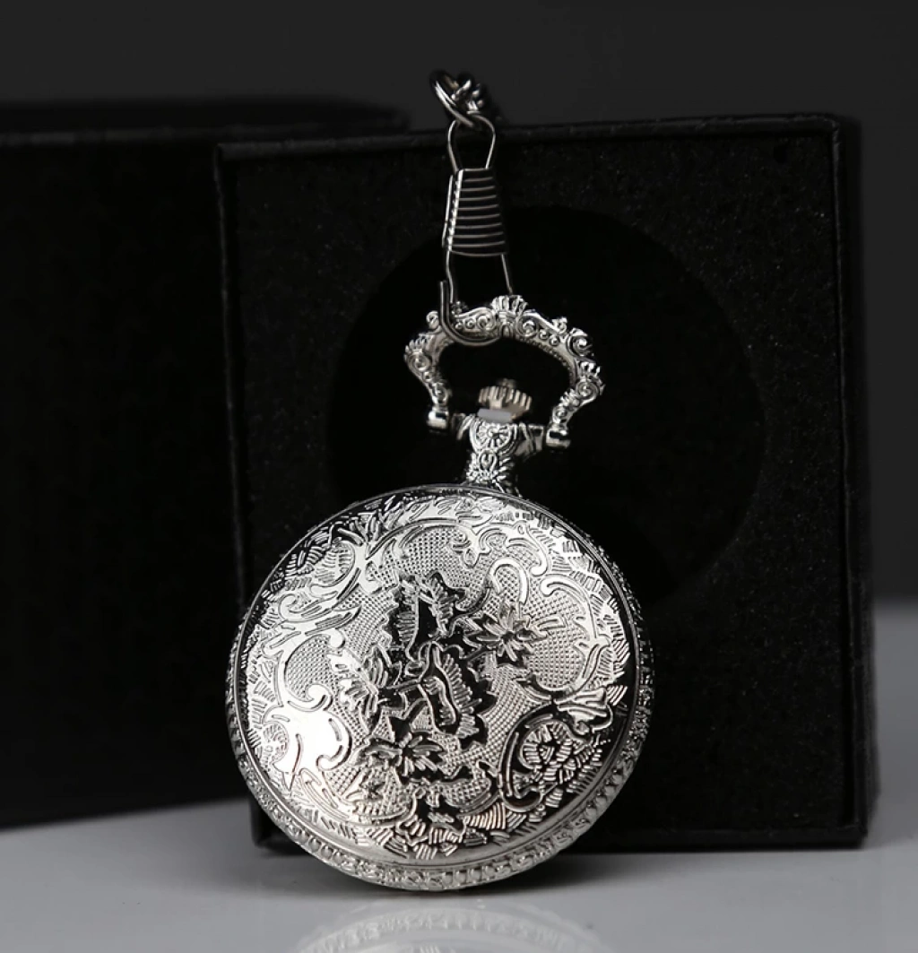 Özel Kutulu Gümüş Köstekli Saat Gümüş kaplaması ve klasik cep saati formuyla zarif bir nostalji vizyonu sunan Özel Kutulu Gümüş Köstekli Saat , hem tarz hem de fonksiyon açısından öne çıkıyor. 4×5 cm boyutuyla cepte taşınabilecek kadar kompakt; özel kutusuyla hediye olarak da sunulabilecek hazır bir seçenek. Koleksiyon koleni tamamlayacak ya da masaüstü dekorasyonunda prestij katacak bir aksesuar.Ürün ÖzellikleriBoyut: 4 × 5 cm Model: Gümüş Köstekli Cep Saati Paket İçeriği1 adet Özel Kutulu Gümüş Köstekli Saat ALK468
