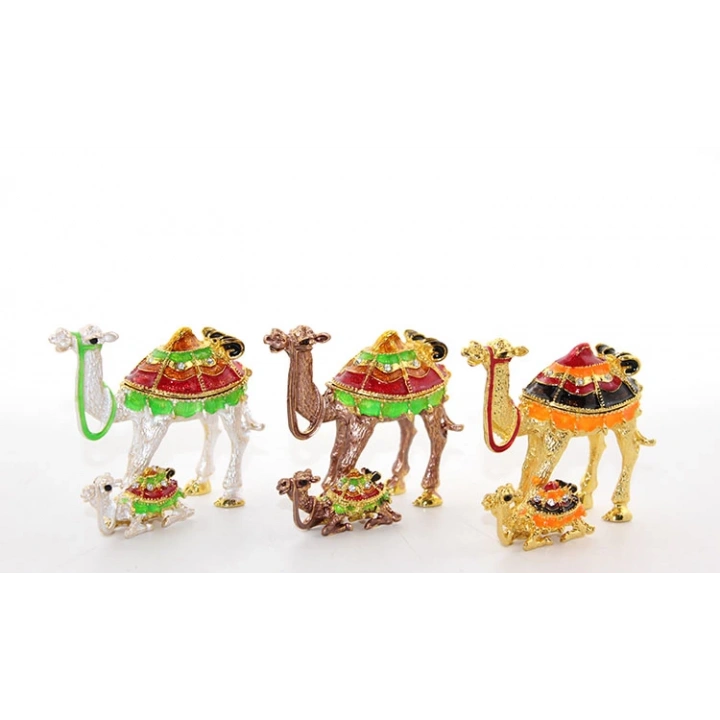SWAROVSKİ YAVRULU DEVE MODEL 4Ürün ÖzellikleriSwarovski Yavrulu Deve Model 4, zarif ve otantik tasarımıyla dikkat çeken koleksiyonluk bir dekoratif objedir. Metal gövdeye sahip olup, yüzeyinde parlak emaye kaplama ve özenle işlenmiş Swarovski taşlarla süslenmiştir. Yavrulu deve figürü, şık detaylarıyla masa, vitrin veya raf dekorasyonları için ideal bir seçenektir. Hem otantik koleksiyon parçaları sevenler hem de özel ve anlamlı hediyeler arayanlar için mükemmel bir tercihtir.Paket İçeriği1 Adet Swarovski Yavrulu Deve